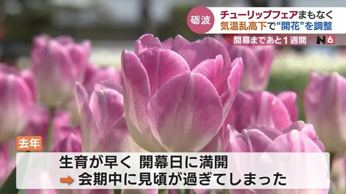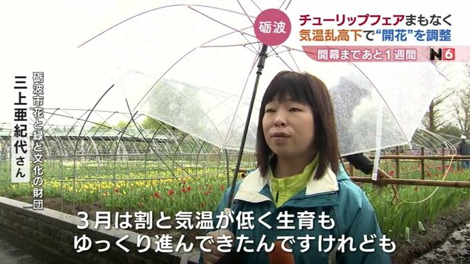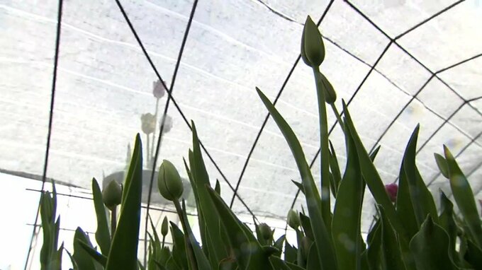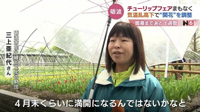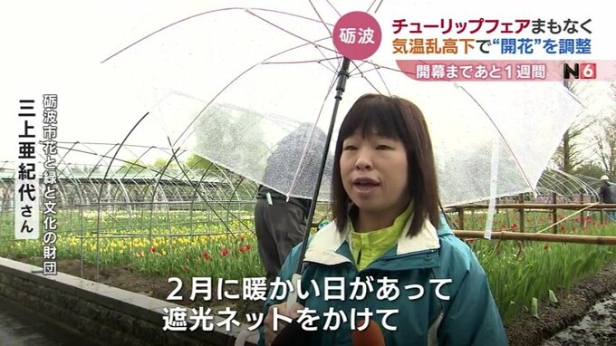 チューリップ四季彩館 三上亜紀代さん:「2月に暖かい日があって、遮光ネットをかけて3月は割と気温が低く、生育もゆっくり進んできたんですけれども…」