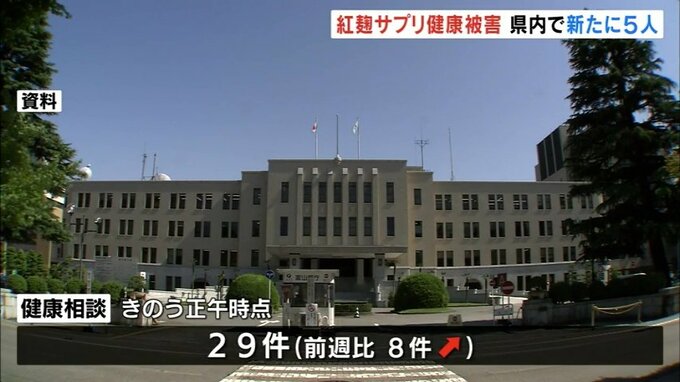 県によりますと小林製薬が販売した「紅麹」を含む健康食品について、県内の医療機関や保健所などに寄せられた健康相談の件数は、16日正午時点で前の週よりも8件増え29件となりました。