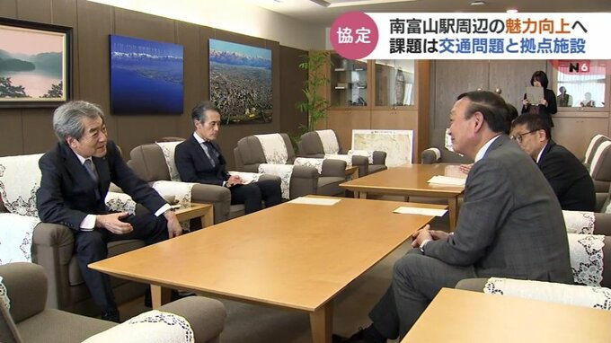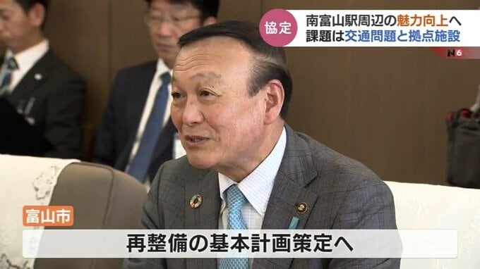 富山市の藤井市長は、富山地方鉄道の中田邦彦社長と南富山駅周辺の再整備に向けた連携協定を結びました。