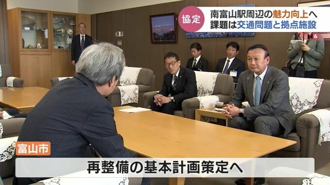 市内電車やバスなどが行き交う富山市の公共交通の要所、南富山駅周辺の再整備を進めるため、市と富山地方鉄道が連携協定を結びました。