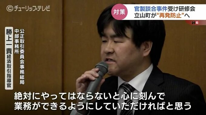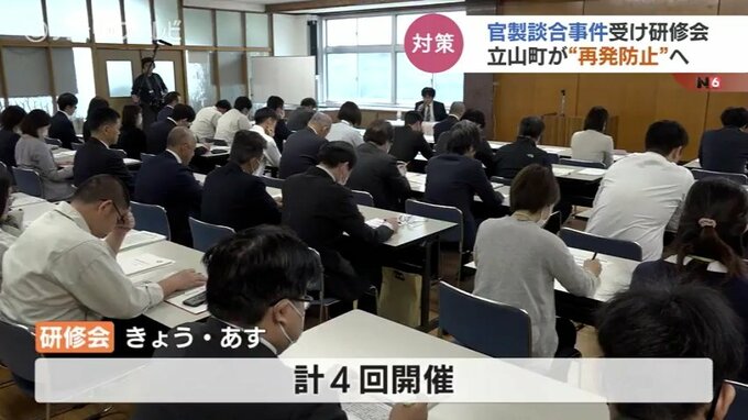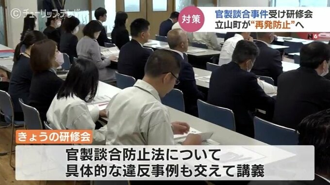 キャンプ場の公共工事をめぐる官製談合事件で富山県立山町の職員が逮捕されたことを受け、町は職員を対象とした2回目の研修会を開きました。
