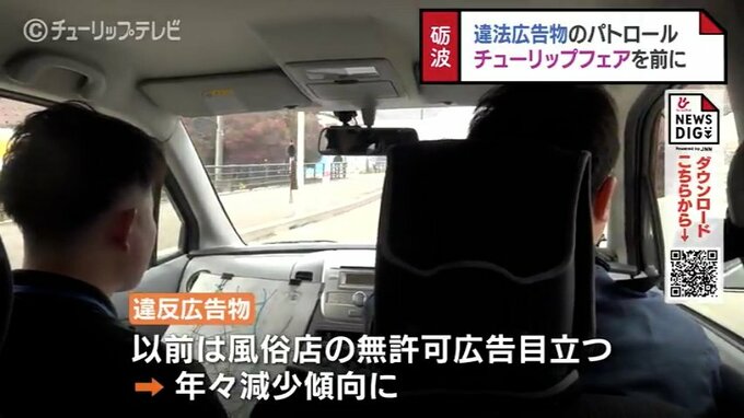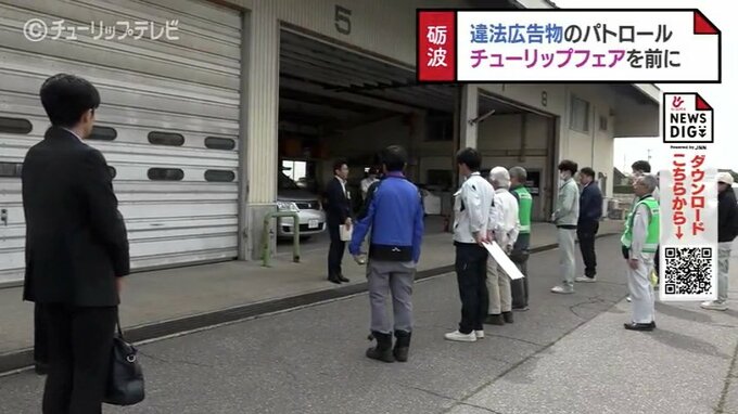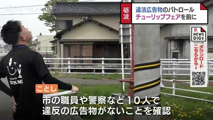 23日に開幕する「となみチューリップフェア」を前に18日、街の景観をそこなう屋外広告物を取り除くパトロールが富山県砺波市で行われました。