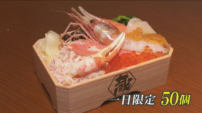 さらに、ボタンエビが豪快にのった「蔵」の海鮮特盛り弁当は、口の中で新鮮ないくらがプチプチと弾けて、ウニの甘さとあわさって“口福”感を演出しています。(1日限定50個)