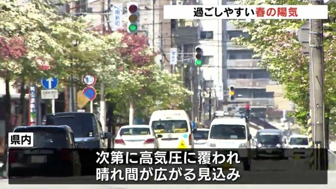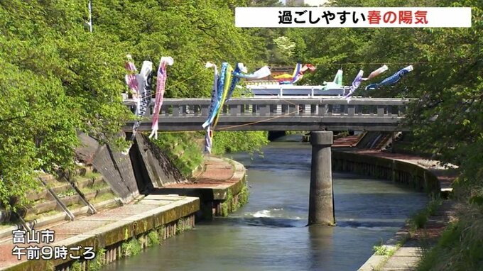 このあと県内は次第に高気圧に覆われ晴れ間が広がる見込みで日中の予想最高気温は富山で23℃高岡市の伏木で22℃と過ごしやすい一日になりそうです。