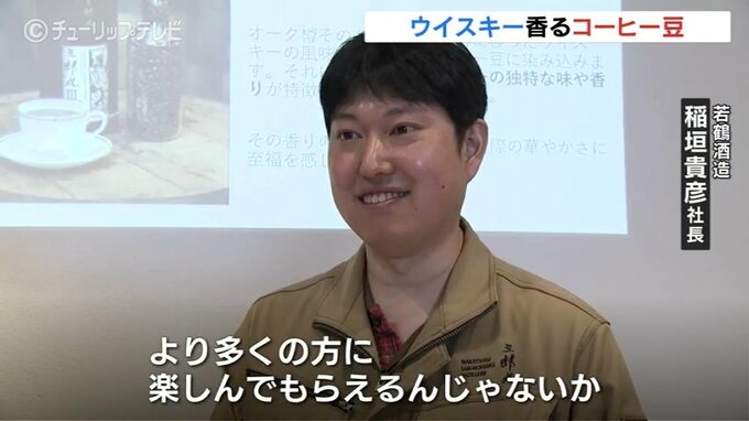 若鶴酒造 稲垣貴彦社長:「お酒が飲めない、苦手な人がいる中でウイスキーの香り、雰囲気を楽しみたいという方に好まれるエイジドコーヒーができたということで、より多くの方に楽しんでもらえるんじゃないか」