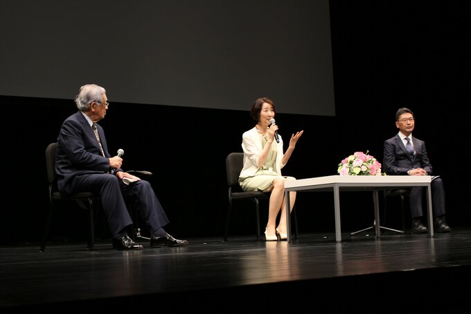 フォーラムでは、かつてドラマでハーンの妻・小泉セツを演じた俳優の檀ふみさんと、前富山県立図書館長の中崎圭子さんが対談しました。