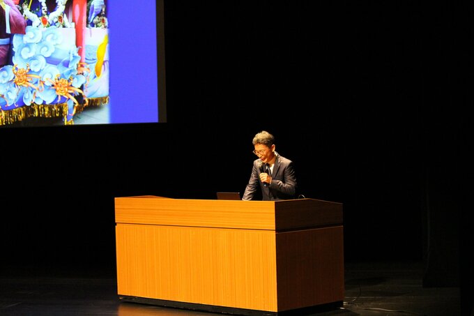 これは「富山八雲会」が開いたもので、ハーンのひ孫の小泉凡(こいずみ・ぼん)さんが「小泉八雲、いまを生きる」と題して講演し、八雲の作品展が今、日本をはじめイタリアやアイルランドなど世界各地で開かれていることを紹介。「八雲の作品は社会に生かされていて、異文化をつなげる感覚がある」と述べました。