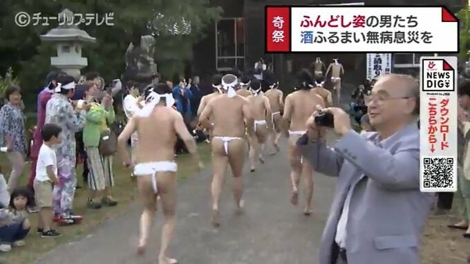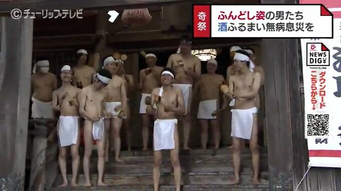 富山県小矢部市の神社に集まったふんどし姿の男たち。境内には太鼓の音が響き渡ります。ふんどし姿の男たちが太鼓の合図とともに「雄たけび」をあげ一斉に走り出しました。