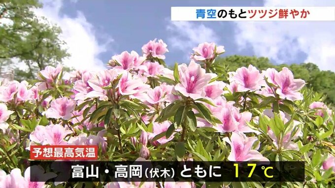 日中の予想最高気温は富山、高岡市の伏木ともに17℃と、過ごしやすい一日となりそうです。