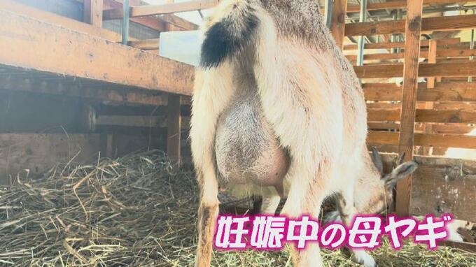 大きなおなかを抱えたお母さんヤギ。取材の数日後、無事元気な双子の赤ちゃんが誕生!