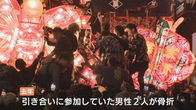 去年は引合いに参加していた男性2人が骨折するなど、「けんか」の激しさでも知られるこの祭り。