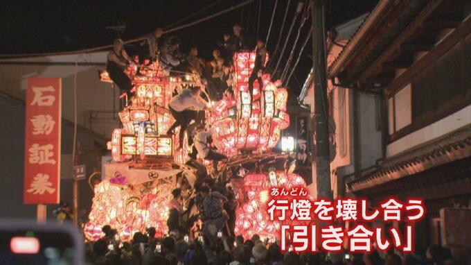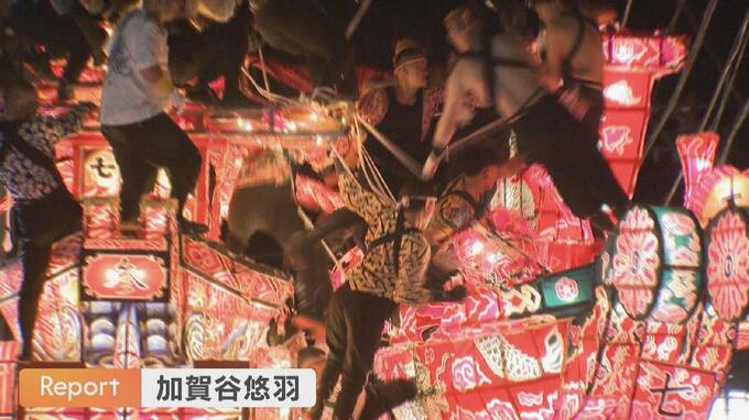 富山県南砺市で2日夜、福野夜高祭がおこなわれ、祭りのクライマックス、大行燈を壊しあう迫力の「引き合い」で、深夜の町は熱気に包まれました。