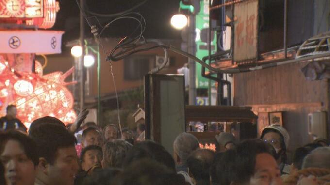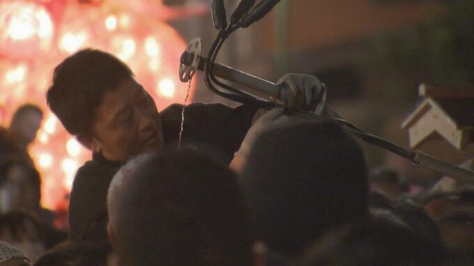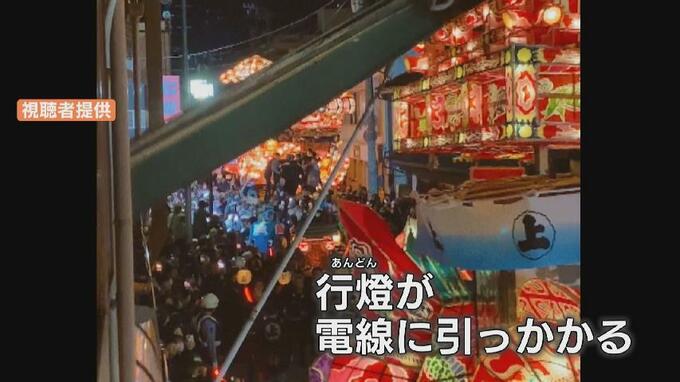 前に進もうとした行燈が電線に引っかかってしまい一時中断。関係者らが応急処置をすると…会場からは拍手が起こりました。