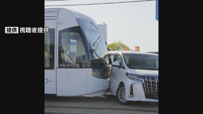 万葉線によりますと、車は近くの釣具店から出た際に、電車と衝突したとみられるということです。