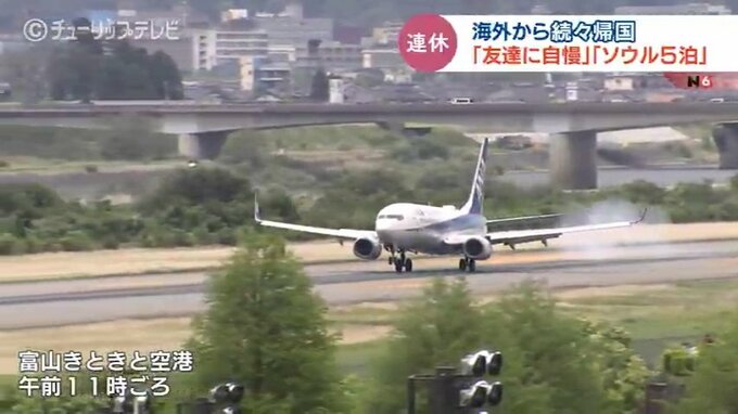 一方、富山空港では、ゴールデンウイークを県外や海外で過ごした人たちの帰省ラッシュとなりました。
