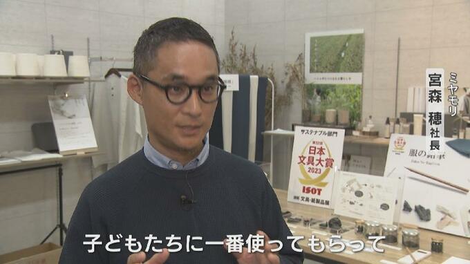 ミヤモリ 宮森穂社長:「最初サンプル作った時は4Bの濃さで作ったんですけど、いろいろ調べてみますと、小学生って今2Bを使っているということで、今回4Bから2Bの濃さに変えた」「子どもたちに一番使ってもらって、環境に関してもっともっと考えてもらいたいなって思っています」