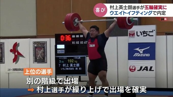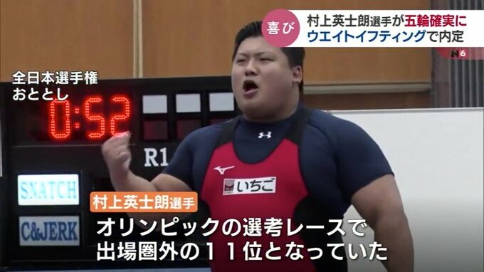 102キロ超級でオリンピック出場を目指していた村上選手は選考レースで、出場圏外の11位となっていましたが、上位の選手が別の階級で出場することになったため、村上選手が繰り上げで10位に入り、初のオリンピック出場が確実となりました。