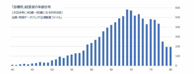 帝国データバンクは、一定期間を経て、代表の高齢化と後継者不在を理由に医療事業の継続を断念する診療所は増える可能性が高く、国内の高齢化が深刻になるなかで「診療所」が相次いで姿を消していくことになるだろうとみています。