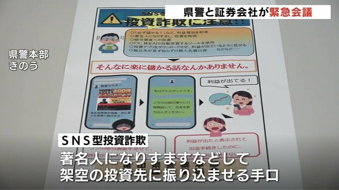 SNS型投資詐欺が富山県内でも急拡大しているのを受け、県警が証券会社を交えた緊急対策会議を開きました。