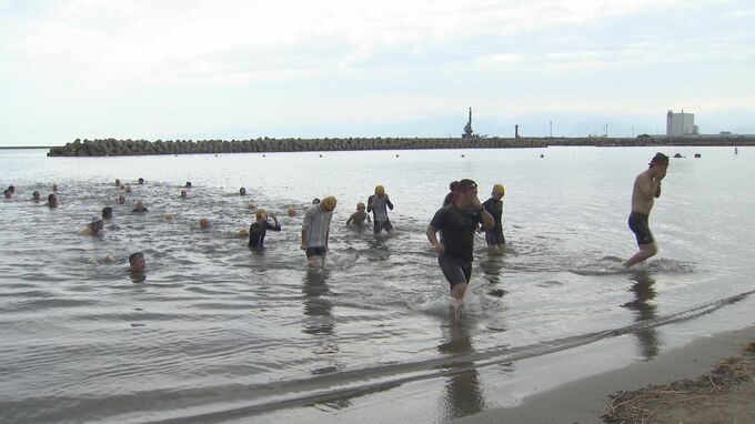 これは、伏木小学校が、子どもたちに地元の海で泳ぐことを通して自然の厳しさや偉大さを知ってもらおうと毎年行っている伝統行事で、今年は、5年生と6年生の41人が参加しました。