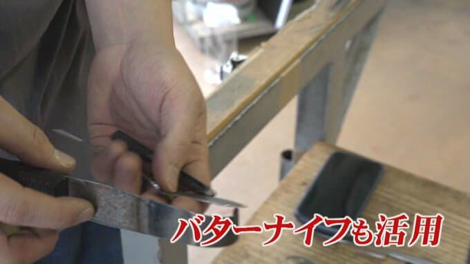 繊細な表現を実現するため、家庭用の工具やバターナイフも活用しています。