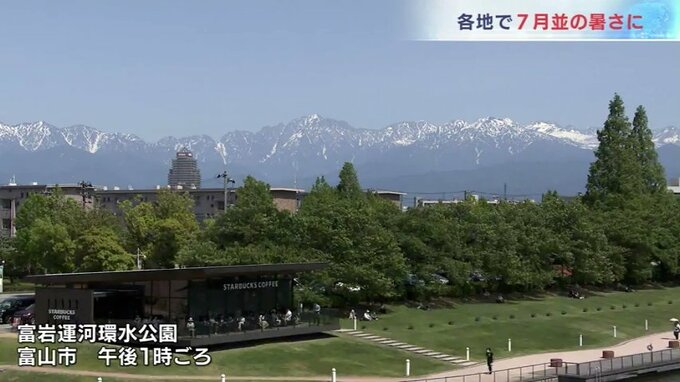 朝から気温はぐんぐん上がり、日中の最高気温は富山で29.6℃高岡市伏木では今年最高となる28.9℃を観測するなど7月上旬から中旬の夏本番の暑さとなりました。