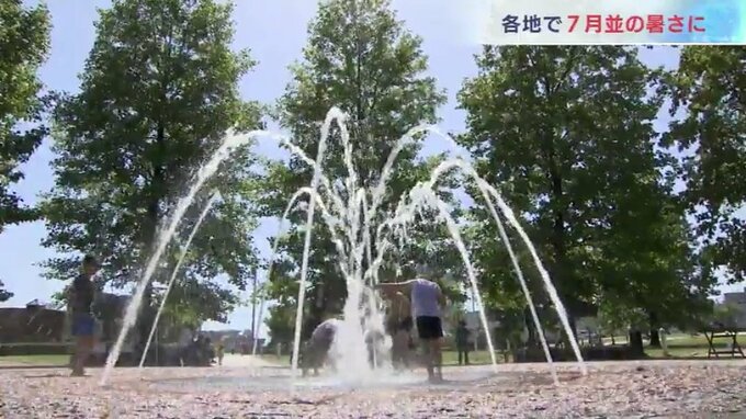 そんな中、少しでも涼を求めようと富山市の富岩運河環水公園では子どもたちが噴水で水遊び。