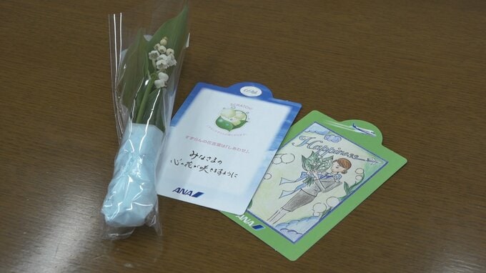 CA竹村和香奈さん:「メッセージカードにも、すずらんの香りがついておりますので、すずらんの香りをかいで、しあせわの気持ちでしたり、また、がんばろうという気持ちになっていただけたらうれしいです。」