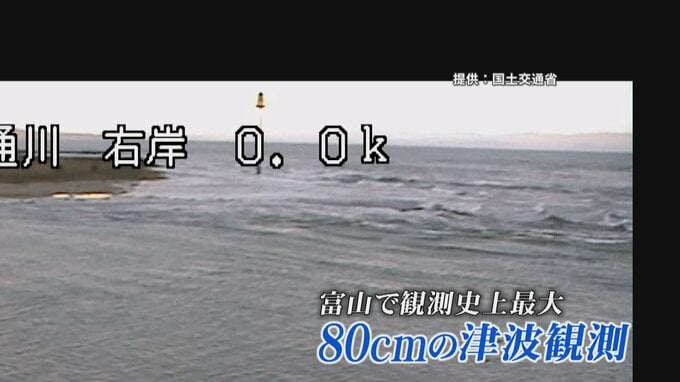 富山市の観測点では観測史上最大となる80センチの津波を観測。