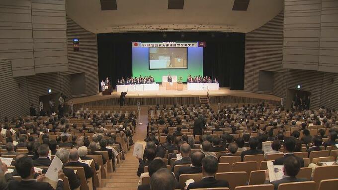 26日、自民党富山県連は定期大会を開き、秋の県知事選挙で現職の新田知事を推薦することを正式に決めました。