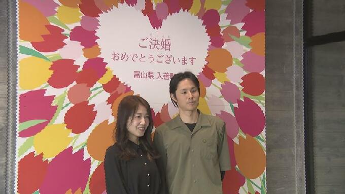 「こちらの施工にも携わってまして自分の施工に携わった建物で一発目として出そうかなというのを2人で話してたんできょう(婚姻届を)出しに来ました」