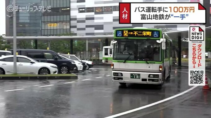 バスの運転手になれば支度金100万円。富山地方鉄道が行っている採用キャンペーンで、バス運転手として入社すると支度金として100万円が貸与され、5年間勤務すると返済が免除されます。