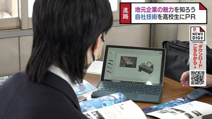 企業側は最近取り組んだ仕事や開発した技術についてPRし、生徒は「業界に興味を持ったきっかけは何ですか?」といった質問をしていました。