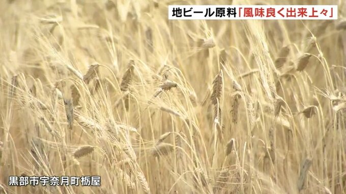 黒部市宇奈月町の栃屋に広がる2.2ヘクタールの麦畑ではビール用の二条大麦「ミカモゴールデン」が収穫の時期を迎え、黄金色に実った穂が次々と刈り取られていました。黒部市ビール麦生産組合によりますと、ことしは品質にこだわり種をまく量を2割減らし水の管理を徹底したことから糖度が高く風味のある麦に仕上がったということです。