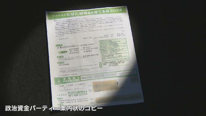 自民党の田畑裕明衆議院議員が6月、都内で政治資金パーティーの開催を予定していることが分かりました。こちらは案内状のコピーですが「出席」「欠席」のほか「ご入金のみ」との記載があります。専門家は、会費の入金のみの場合は「寄付」にあたり政治資金規正法に違反するおそれがあると指摘しています。