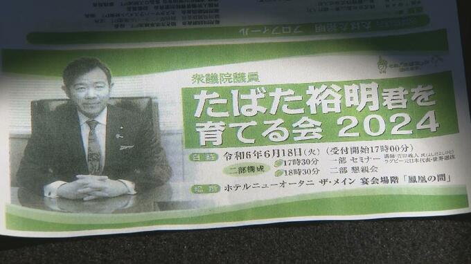 「衆議院議員たばた裕明君を育てる会」。これは6月、都内で予定されている自民党、田畑裕明衆議院議員の政治資金パーティーの案内状です。