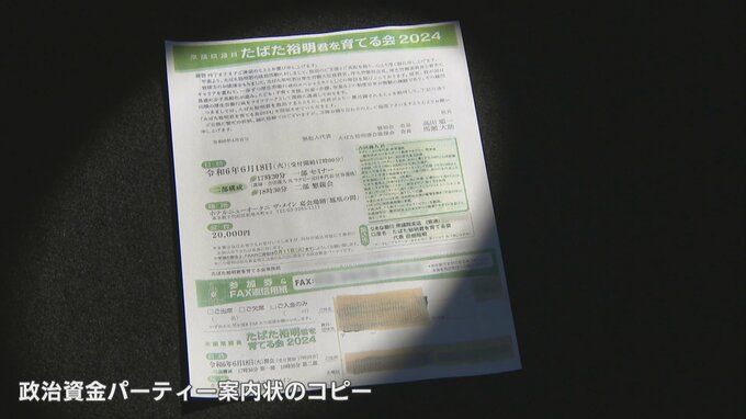 政治資金パーティーの規制強化に向けた議論が大詰めを迎えるなか6月18日、都内で開催を予定しているのが自民党、田畑裕明衆議院議員の政治資金パーティーです。