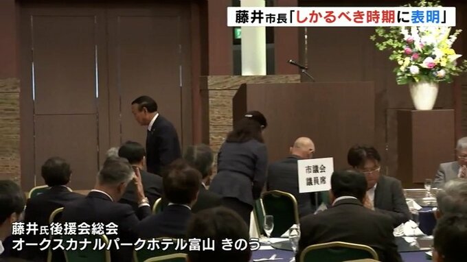 3日夕方、富山市の藤井市長の後援会の総会が市内のホテルで開かれました。