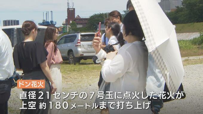 10日は神通川の河川敷で直径21センチの7号玉に点火した花火が、高さ180メートルまで打ち上げられ、ドンという花火の大きな音が富山の街に正午を告げました。