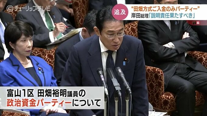 立憲民主党・社民 村田享子議員:「今回の “田畑方式ご入金のみパーティー” そもそもいつから田畑議員がこうしたパーティーをはじめたのか、また自民党のなかで他にもこうしたご入金のみパーティーを開催している議員はいるのか?その確認はどうなっているでしょうか…」