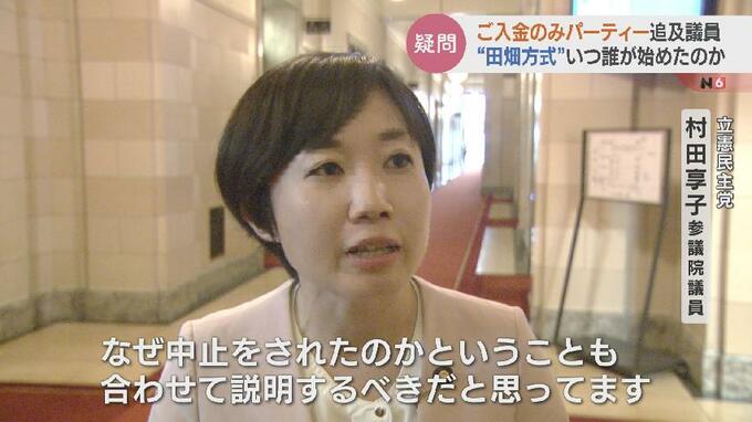 立憲民主党 村田享子議員:「こんなの初めて見たなと…。まわりの方に聞いても、いやこれはおかしいだろうという声がものすごくあってですね。田畑方式ともいえる“ご入金のみ”っていう仕組みがいつから始まったのかとか、あれは田畑議員本人が思いついたものなのか、とかですね。もしくは誰か別でされてる方がいて、それをまねしたものなのかとか、本当にこのご入金のみが始まった経緯というのも、もっと調べないといけないなって思いますよね…」