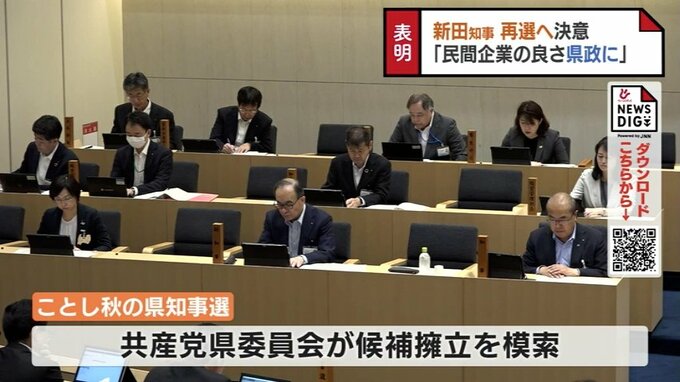 新田知事はことし3月に記者会見で出馬を表明。今回初めて県議会で再選出馬への決意を語りました。