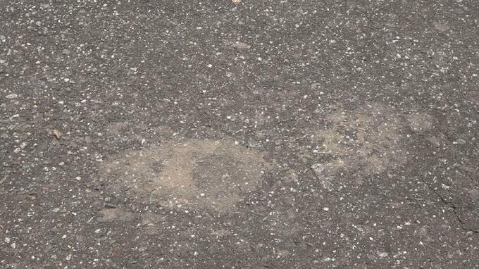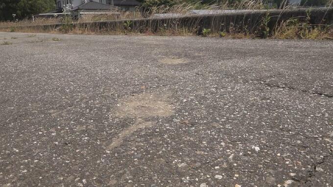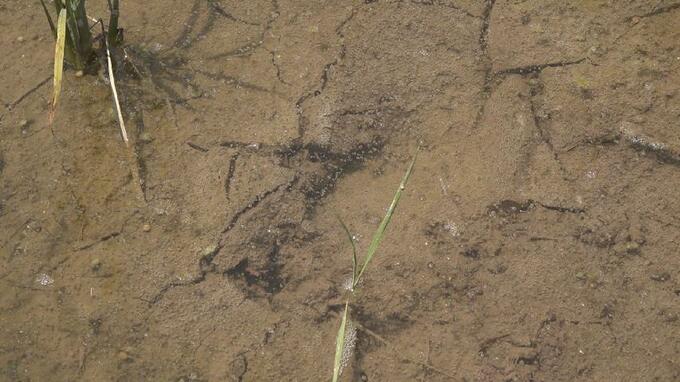 歩道に残るクマのものとみられる足跡。富山市大沢野地域では14日、朝から田んぼや住宅の敷地でクマの目撃が相次ぎました。