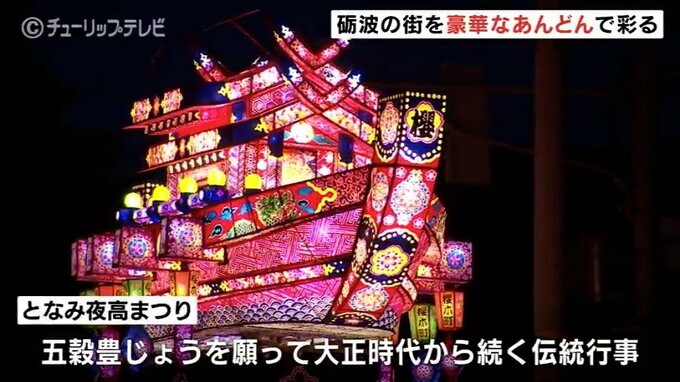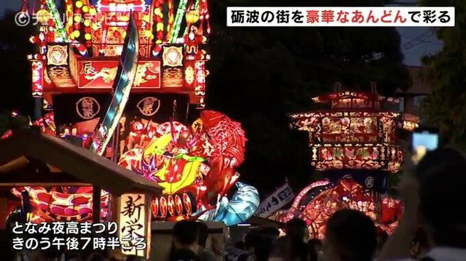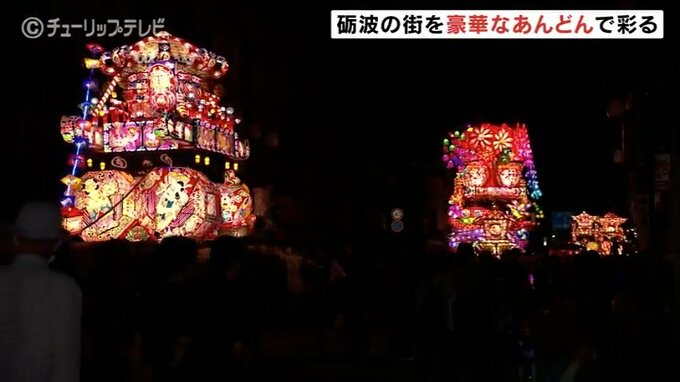14日夜から砺波市では富山県砺波市では「となみ夜高まつり」が始まり、絢爛豪華なあんどんが砺波の夜の街を彩りました。