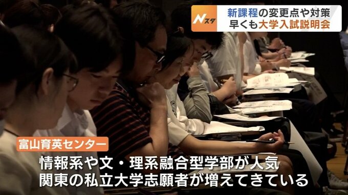 富山育英センターによりますと、近年は情報系や文系・理系融合型の学部が人気で県内からは、関東の私立大学への志願者が増えてきているということです。