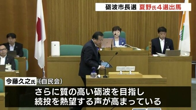 11月27日の任期満了に伴う砺波市長選で現職の夏野修氏は17日の市議会で4選を目指して出馬すると表明しました。