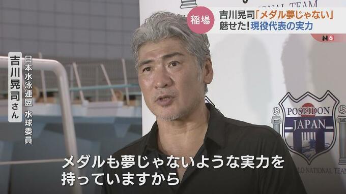 日本水泳連盟 水球委員 吉川晃司さん:「パリ代表強かったですね。ちょっと見たことないようなシュートがいくつか。悔しがりながら感動もしてました。メダルも夢じゃないような実力を持ってますから、あとは余計な緊張せずに試合を楽しんで全力で臨んでくれればいいなと思います」