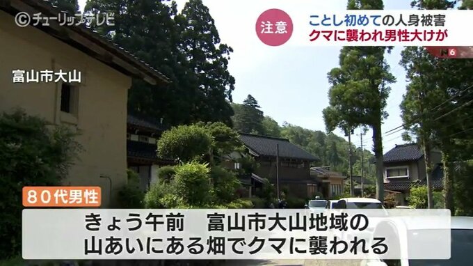富山市の山あいで畑作業をしていた80代の男性がクマに襲われて、大けがをしました。県内でクマによる人身被害はことし初めてで、県はツキノワグマ出没警報を出し警戒を呼び掛けています。