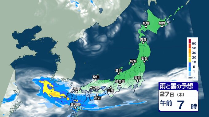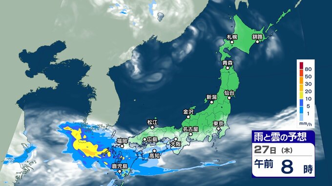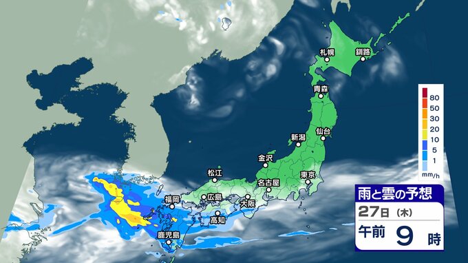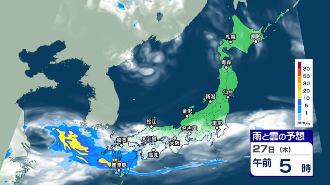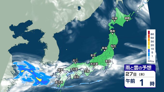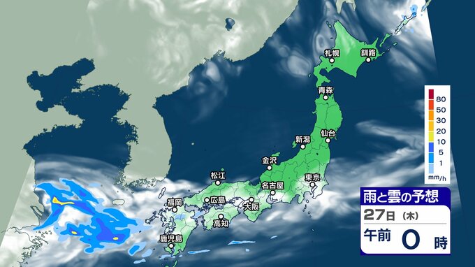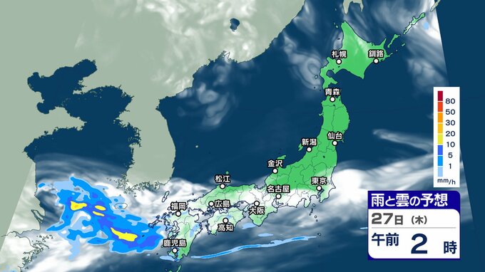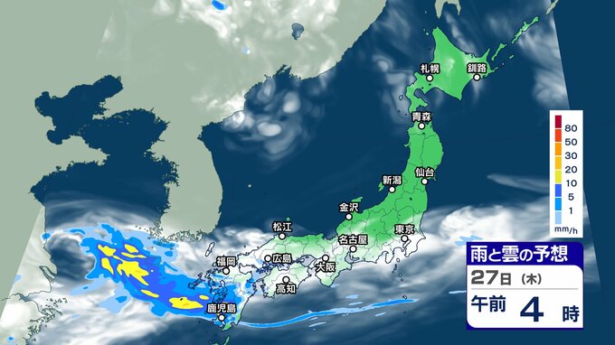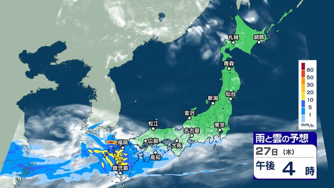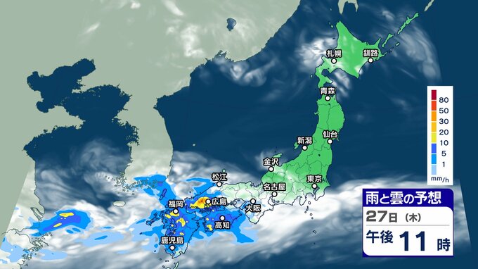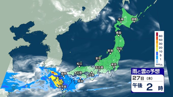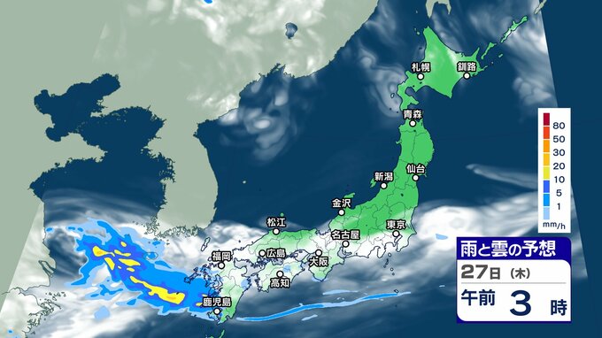 ニュースクリップ 週末にかけて “梅雨前線 ” 活発化【雨と雲シミュレーション】西日本を中心に警報級大雨のおそれも 2024年6月25日(火) 17:45 国内 天気 27日(木)雨と雲の動きシミュレーション
