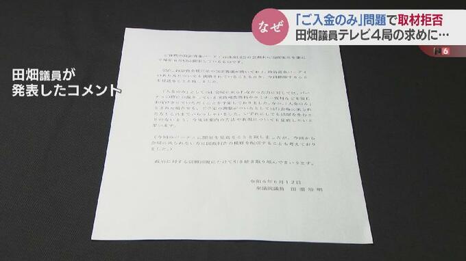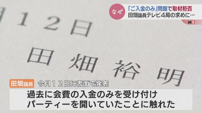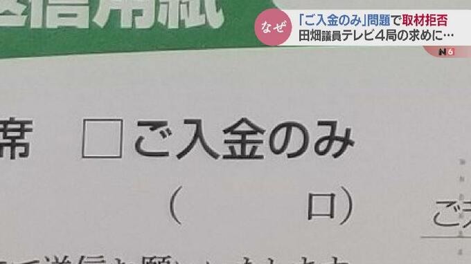 田畑議員はこの問題について今月12日にコメントを発表。「ご入金のみ」は誤解を招く表現だったとして今後は案内の方法や表現について見直すとしましたが─。